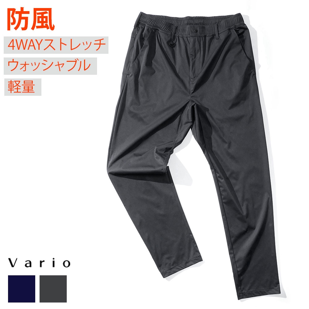 Vario ヴァリオ メンズ 防風ストレッチ イージーパンツ ウォッシャブル テーパード スラックス ビジネス カジュアル テレワーク ワークスーツセット アップ対応 ゴルフ ワーク ウエア 軽量 防風 秋冬 ネイビー ブラック V-43009 COVERWORK カヴァーワーク