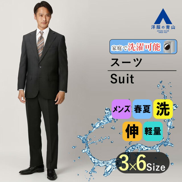 【洋服の青山】ツーパンツ スーツ メンズ 春夏 男性 紳士服 シングル ブラック 黒 ストライプ スタンダード ツータック ウォッシャブル 洗える ストレッチ 伸縮 形状記憶 軽量 軽い 2ボタン 標準体 ビジネス おしゃれ かっこいい 2つパンツ REGAL