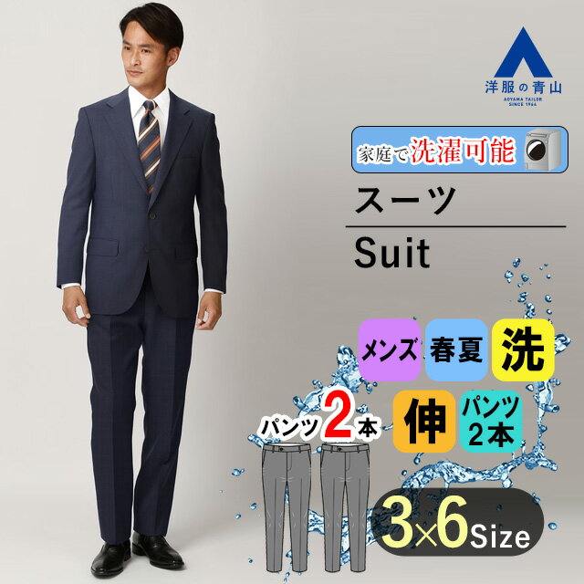 【洋服の青山】【楽天ランキング2位入賞】ツーパンツ 洗える 春夏 ネイビー系 スタンダードスーツ ウォッシャブル メンズ 男性 紳士服 シングル ビジネス ストレッチ 軽量 長袖 標準体 ツータック おしゃれ かっこいい 織柄 2ボタン 快適な着心地 シャワークリーン可 REGAL