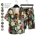 セットアップ 上下セット アロハシャツ ショートパンツ メンズ 半袖 シャツ 花柄 総柄シャツ 開襟シャツ 海 ビーチ プール トップス 大きいサイズ 春夏新作 送料無料