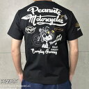 スヌーピーxFLAGSTAFFコラボ半袖Tシャツ 452094 SNOOPY BIKER(ブラック) アメカジ キャラクター PEANUTS バイク