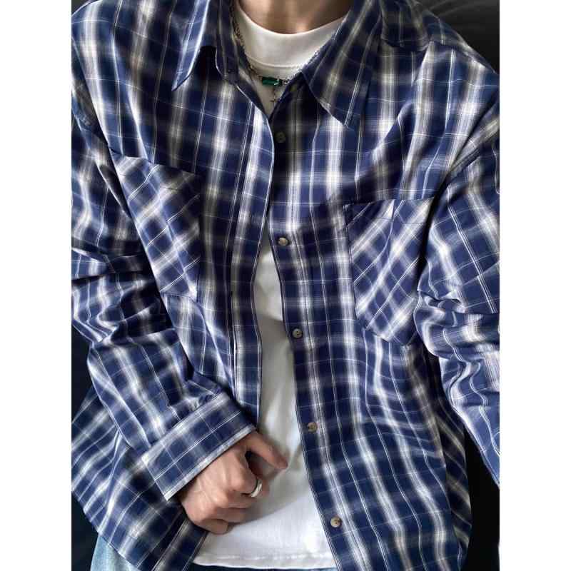 シャツ 男性用 綿 デザイン性 チェック柄 シャツジャケット ゆったり 長袖 トップス 羽織り アメカジ 古着風
