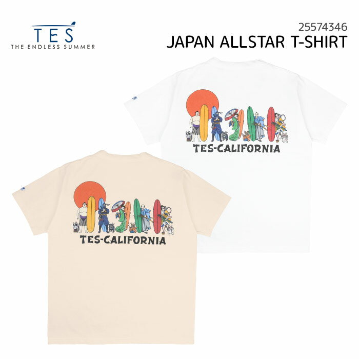 39ショップ 送料無料 25574346 【THE ENDLESS SUMMER|ザ エンドレスサマー】TES JAPAN ALLSTAR T-SHIRT 海外の人が描く「日本」をイメージしてデザインされたプリントTシャツ。 洗い晒しの様な風合いが特徴のアメリカンコットンを忠実に日本生産にて再現したオリジナルヘビーウェイト天竺を採用した半袖Tシャツ。 生地・縫製全て日本製で、度目を詰めながらも柔らかさを出し、頑丈さを兼ね備えた抜群の着心地に仕上がっています。 実は、一緒に並んでいるシュールなフレブル達がポイントな一枚です。 ■Brand Information 【THE ENDLESS SUMMER】ザ エンドレスサマー(THE ENDLESS SUMMER)は、古き良きアメリカ西海岸のスタイルをその時代の流行とMIXしたアパレルを展開する国内ブランド。 プリントTシャツはもちろん、キャップ、パーカー、コーチジャケットなど、サーフスタイルだけでなくタウンユースに馴染むアイテムを展開している。 カラー 前面プリント 背面プリント ディテール Item Spec サイズ表(cm) S M L XL 2XL 肩幅 44 46 49 51 54 身幅 50 52 55 57 60 着丈 63 65 68 71 74 袖丈 19 20 21 22 23 ※単位はcmです。 ※商品ごとの個体差により表記サイズから誤差が生じる場合がございます。 ■サイズの計測方法についてはこちらをご覧ください。 素材 綿100% 生産国 日本 ≫ 2025年新作Tシャツはこちら ≫ 半袖Tシャツはこちら ≫ THE ENDLESS SUMMERの商品はこちら Information ・ メーカーの都合により掲載内容が実際の商品と一部異なる場合がございます。 ・ 当店ではプレゼント用のラッピングを承っておりません。 ご了承の上、ご注文ください。 ・ サイズ表に記載されている値は商品ごとに多少前後する場合がございます。 サイズ数値は基本値としてご参照下さい。 ・ 当店の在庫は全て実店舗と共有しております。 在庫管理には細心の注意を払っておりますが、ご注文を頂いたとしても在庫切れになっている場合がございます。 ・ ご注文後、弊社在庫を確認の上メールにてご連絡致します。 ・ ご注文は、在庫確認のメールをお送りした段階で確定となります。(楽天よりの自動配信メールとは異なります。) ・ ご利用の機器によって実物商品とカラーが異なって見える場合があります。 誠に申し訳ございませんが、ご理解下さいます様お願いいたします。