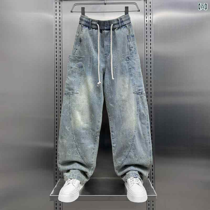 メンズ ファッション 服 男性用 オシャレ シンプル 大人 かっこいい ストリート 秋 冬コーデ アメリカン ストリート ジャカード ジーンズ ゆったり ワイドレッグ パンツ カジュアル パンツ