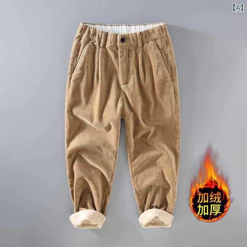 メンズ パンツ コーデュロイ ストレート ゆったり カジュアル 厚手 秋冬 コットン 無地 多ポケット ミッドライズ ストレッチ 普段使い 青年向け カーキ グレー ネイビー