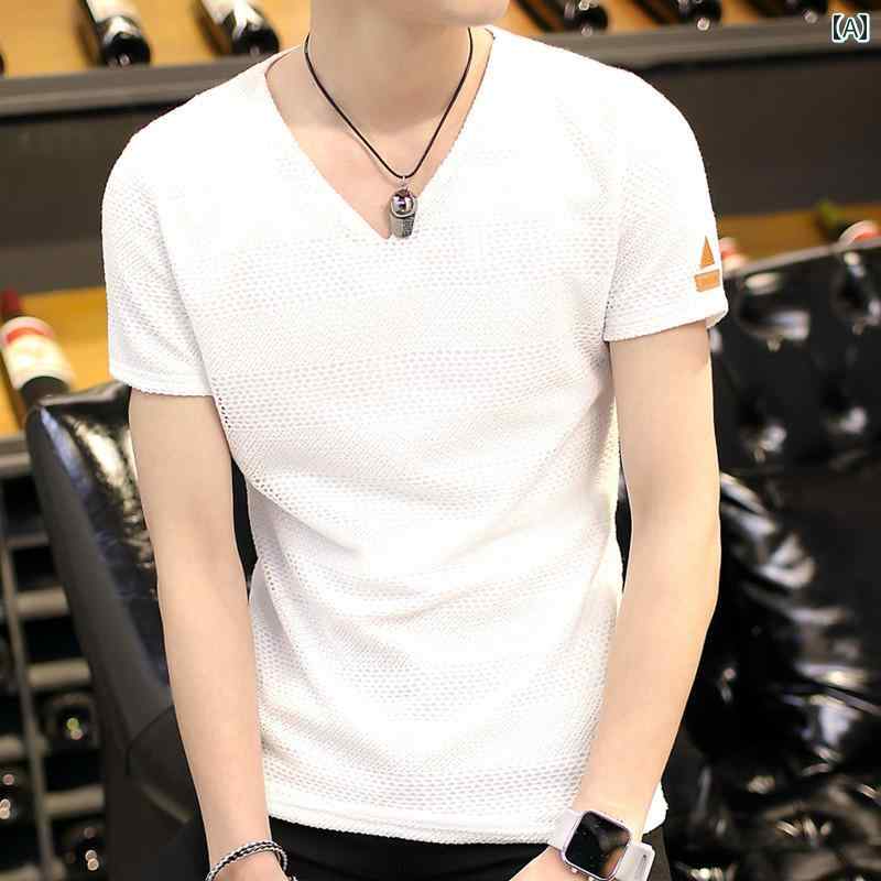 Tシャツ 夏 メンズ Vネック タイト 半袖 通気性が良い 個性 ユニーク トップス カジュアル おしゃれ プラスサイズ