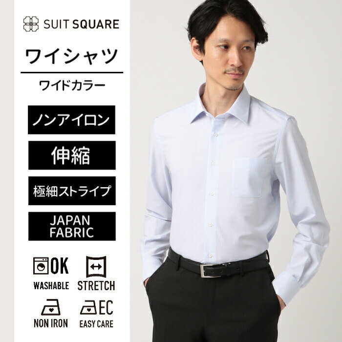 ワイシャツ メンズ 長袖 形態安定 ジャージー ストレッチ ワイドカラー ストライプ FIT スリム サックス 通勤 スーツスクエア セット Yシャツ ノーアイロン 洗える 防シワ 速乾 伸縮 ビジネス タイト ノンアイロン ストレッチ 吸汗 速乾 伸びる 洗える トリコット 伸縮性 xyz
