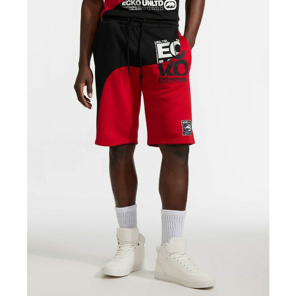 エコー メンズ ボトムス ハーフパンツ・ショーツ レギュラーフィット ショートパンツ フリース Ecko Unltd Men's Hodad Fleece Regular Fit Shorts True Red/Black ブラック