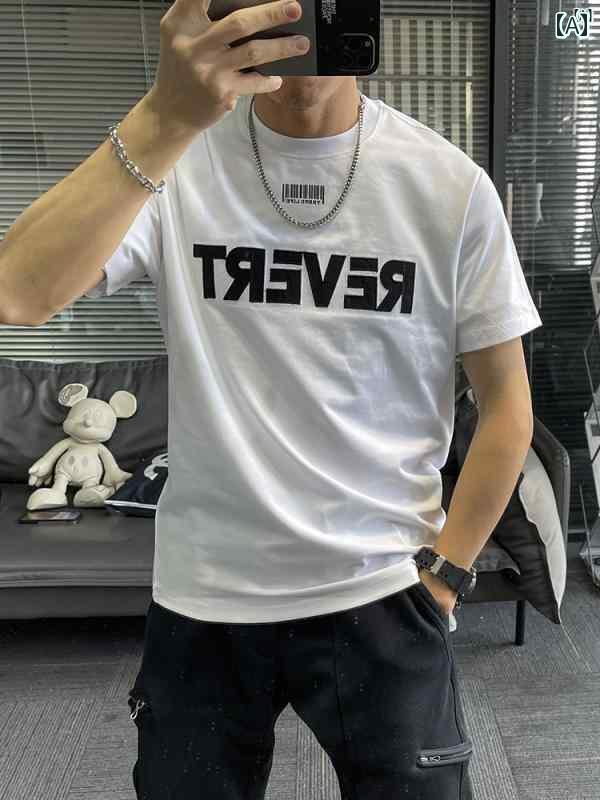 メンズ ファッション オシャレ カジュアル 男性 夏 半袖 Tシャツ ラウンドネック レター コットンプリント シンプル トップス