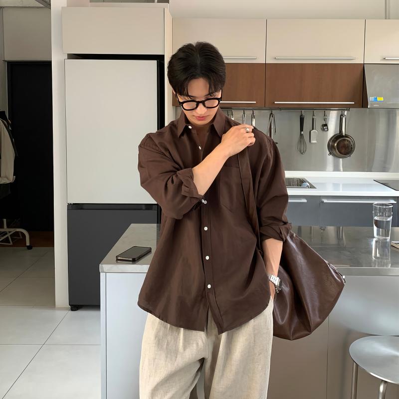 メンズ ファッション 服 男性用 オシャレ シンプル 大人 かっこいい ストリート 綿 ブラウン 長袖 シャツ ハイエンド ライト カジュアル 日焼け防止 ジャケット