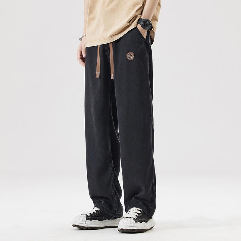秋冬 コーデ メンズ 服 シンプル ファッション オシャレ 大人 かっこいい 大きいサイズ ストリート 紳士服 レトロ ウォッシュ加工 ストレッチ ウエスト カジュアル パンツ ストリート ワイド レッグ ドレープ ドローストリング ジーンズ