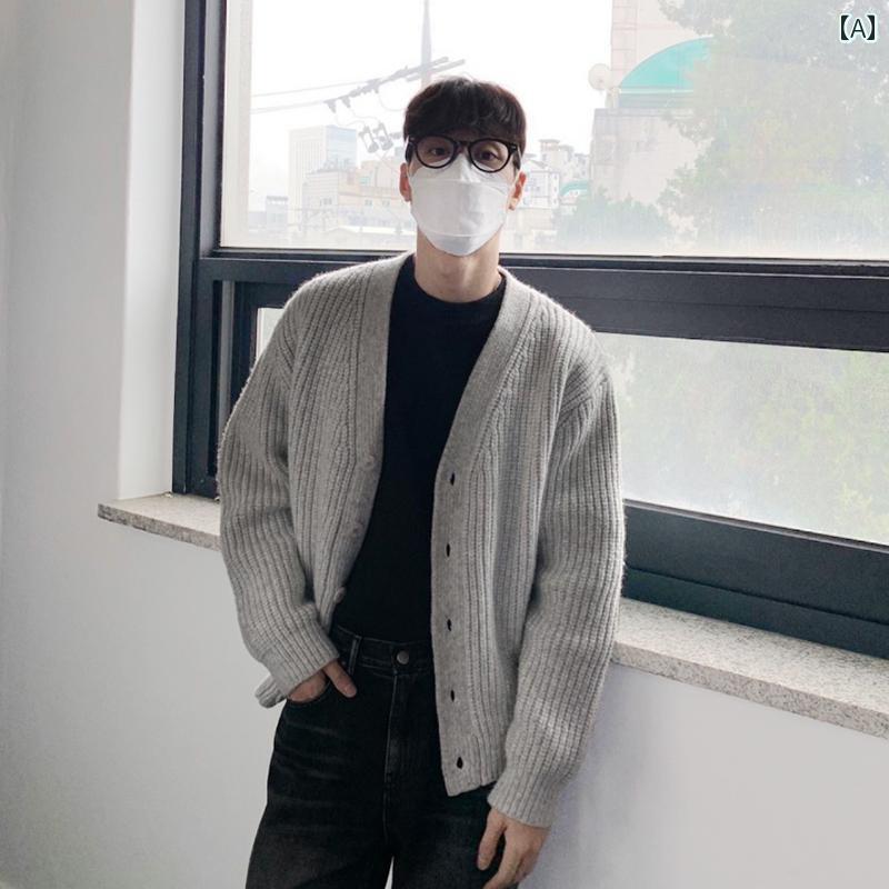 メンズ ニット カーディガン セーター ジャケット ファッション おしゃれ 秋冬 肥厚 V ネック カップル トップス グレー 緑色