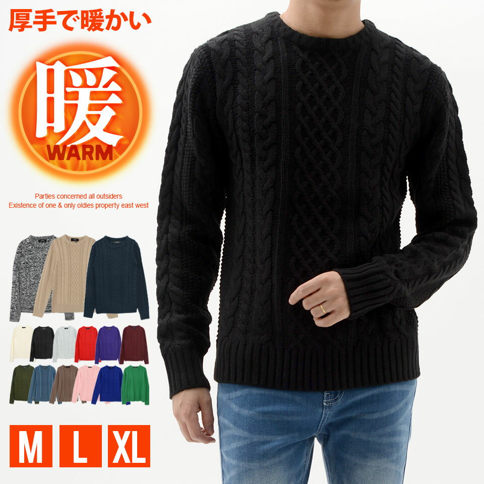 "ケーブル編みクルーネック長袖ニット/全15色"ニット セーター ニットソー メンズ 20代 30代 40代 50代 大人 ファッション 長袖 長袖ニットソー ケーブル編み ケーブルニット トップス きれいめ 無地 丸首 シンプル アクリル アクリルニット 黒 白 冬 秋冬 防寒 暖かい