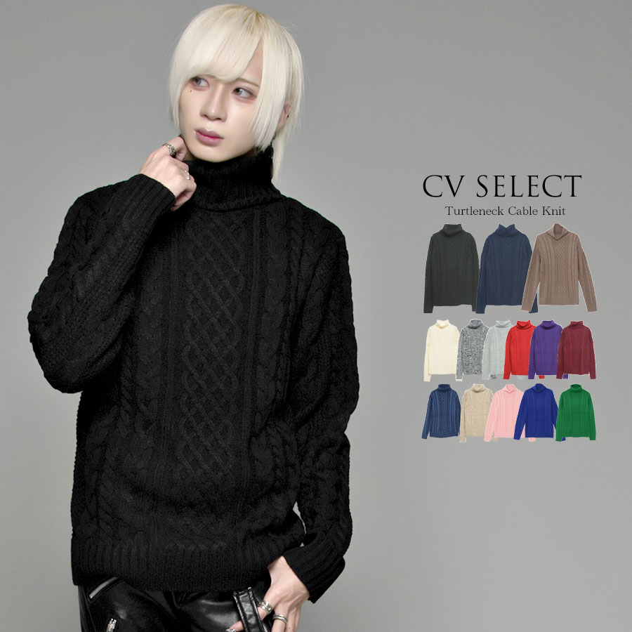 "CV Select【シーブイセレクト】ケーブル編みタートルネック長袖ニットソー/全14色"【送料無料】ニット メンズ セーター ブランド タートルネック 無地 ニットソー ケーブル V系 ホスト系 ヴィジュアル系 きれいめ ブラック 黒