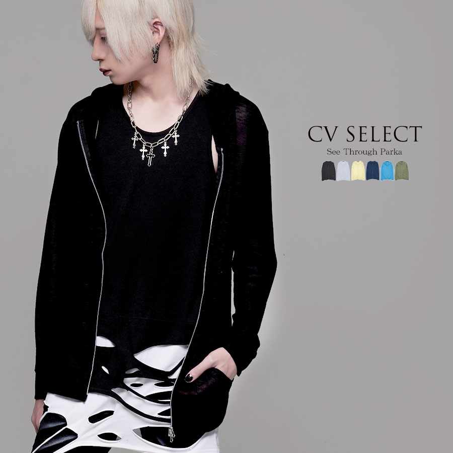 "CV select【シーブイセレクト】シースルーサマーニットダブルジップパーカー/全6色"パーカー メンズ ブランド ファッション UV対策 冷房対策 春 夏 薄手 サマーニット サマーパーカー ユニセックス ルームウェア 部屋着 ブラック