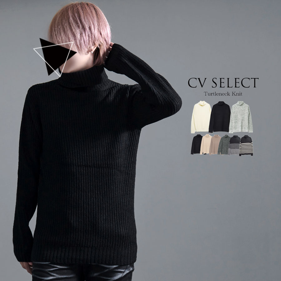 "CV Select【シーブイセレクト】畦編みタートル長袖ニットソー/全9色"送料無料 ニット メンズ セーター 畦編み あぜ編み タートルネック 長袖 ニットソー トップス 地雷系 ホスト きれいめ キレイめ V系 お兄系 あったか シンプル 無地 ユニセックス 黒 ブラック