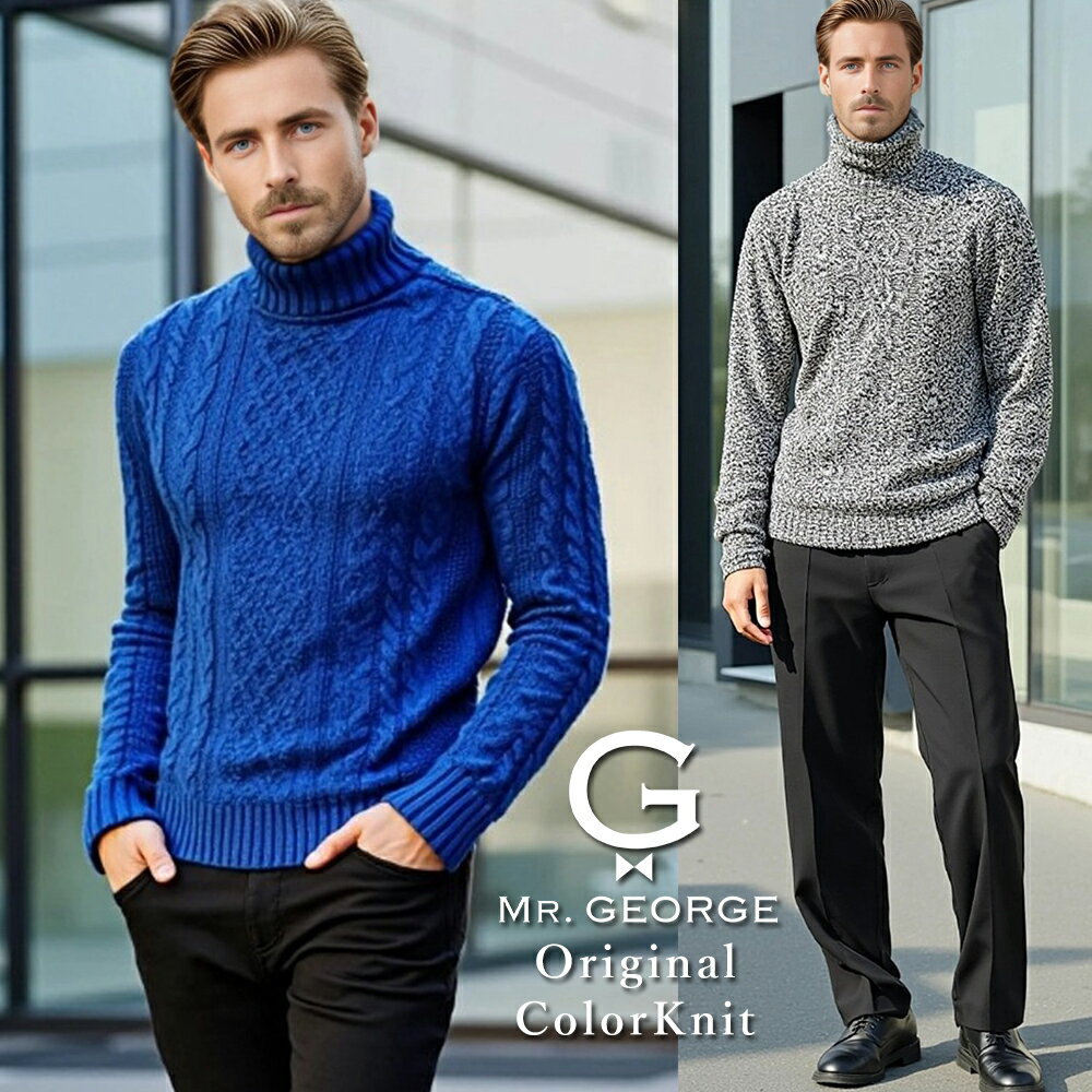 イケオジ ニット メンズ ちょいワル オヤジ セーター 40代 ファッション おしゃれ 50代 60代 ミスタージョージ ブランド 大人 ダンディ ちょい悪 ケーブル編み タートルネック 長袖 トップス インナー シンプル 無地 ケーブルニット 大きいサイズ 秋 冬 60代