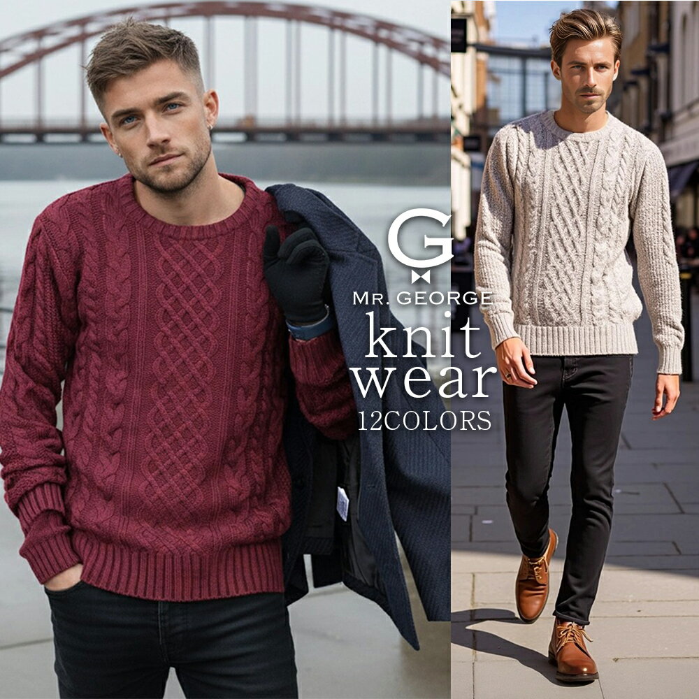 イケオジ オトナ中年男性 ニット 40代 ファッション おしゃれ 50代 60代 ミスタージョージ ブランド 大人 ケーブル編み メンズ クルーネック ニットソー インナー 秋 冬 無地 シンプル ブラック ホワイト キャメル グレー 黒 白 60代 大きいサイズ