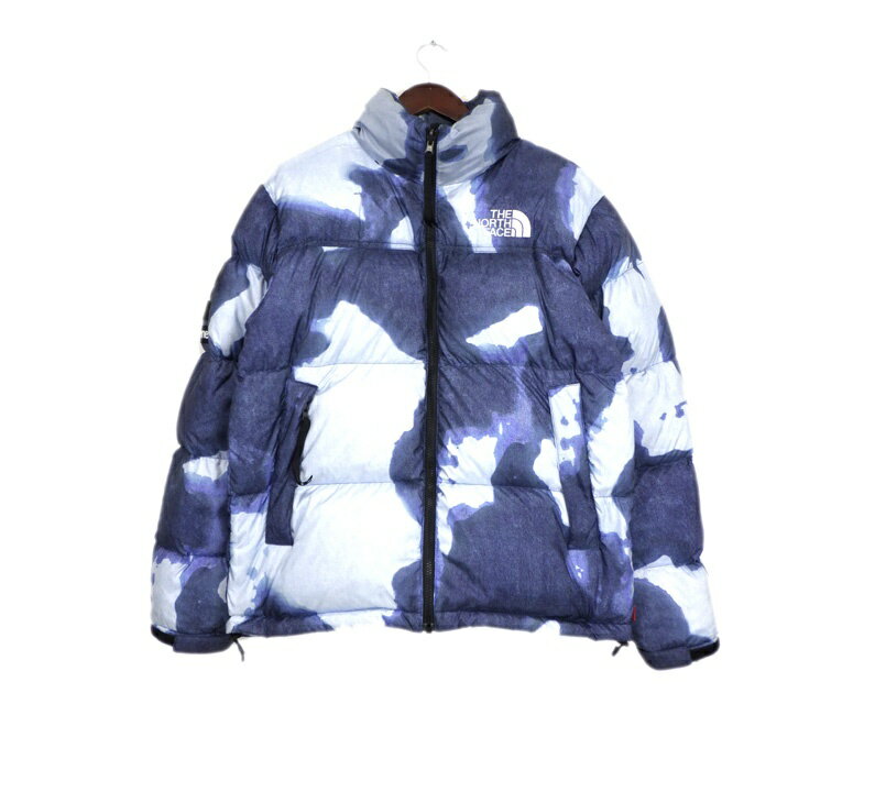 シュプリーム Supreme × ノースフェイス THE NORTH FACE 21AW 【 Bleached Denim Print Nuptse Jacket NF0A7WO8 】 ブリーチド デニム プリント ヌプシ ダウン ジャケット ブルー サイズM w25307【中古】