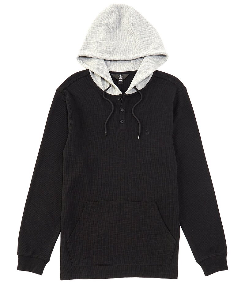 ボルコム メンズ アウター パーカー・スウェット パーカー Volcom Long Sleeve Murphy Color Block Slub-Thermal Hoodie New Black ブラック