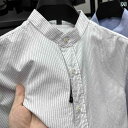 シンプル メンズ Yシャツ 小さい スタンドカラーの 長袖 シャツ メンズ コットン 縦縞 メンズシャツ 春 トップス インチ