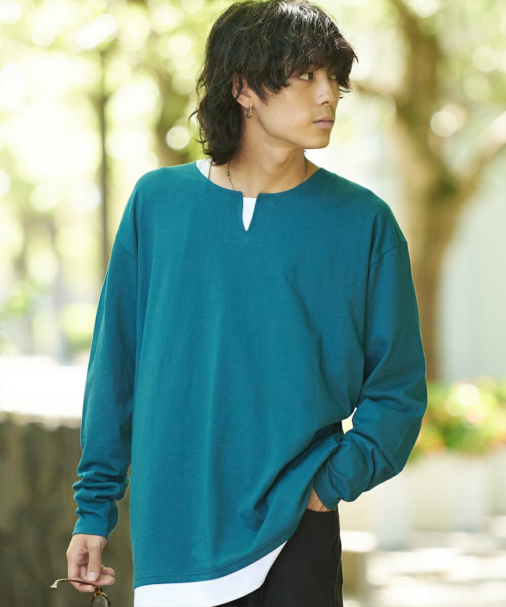 汗じみ 目立ちにくい ZEROSTAIN フェイクレイヤード ビッグキーネックTシャツ/ゼロステイン(ZERO STAIN)
