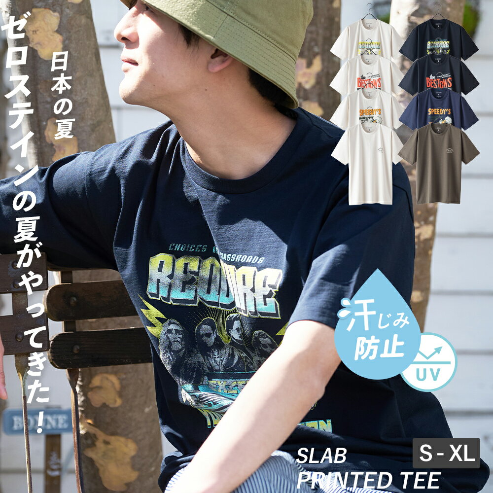 汗目立たない ゼロステイン ZERO STAIN 汗染み防止 Tシャツ スラブ生地 プリント メンズ レディース 男女兼用 トップス 半袖 おしゃれ 吸水速乾 人気 tシャツ 機能 快適 インナー 肌着としても 撥水加工 UVカット 防汚加工 紫外線防止