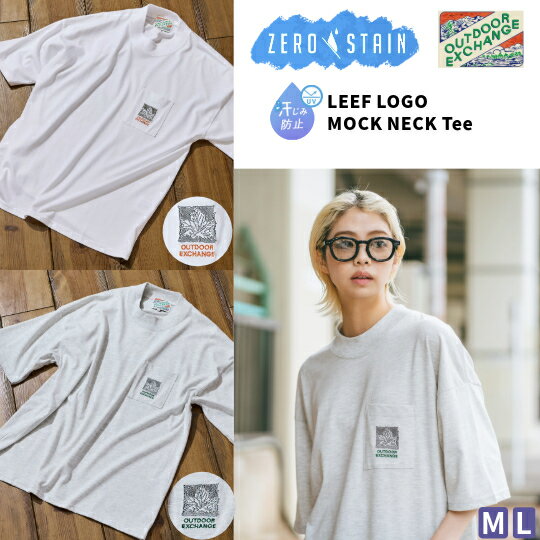 OUTDOOR EXCHANGE x ZERO STAIN コラボ モックネックT ゼロステイン 汗じみ 防止 メンズ UV 男女兼用 トップス 半袖 おしゃれ 吸水速乾 人気 無地 tシャツ 機能 快適 インナー 肌着としても 撥水加工 UVカット 防汚加工 紫外線防止