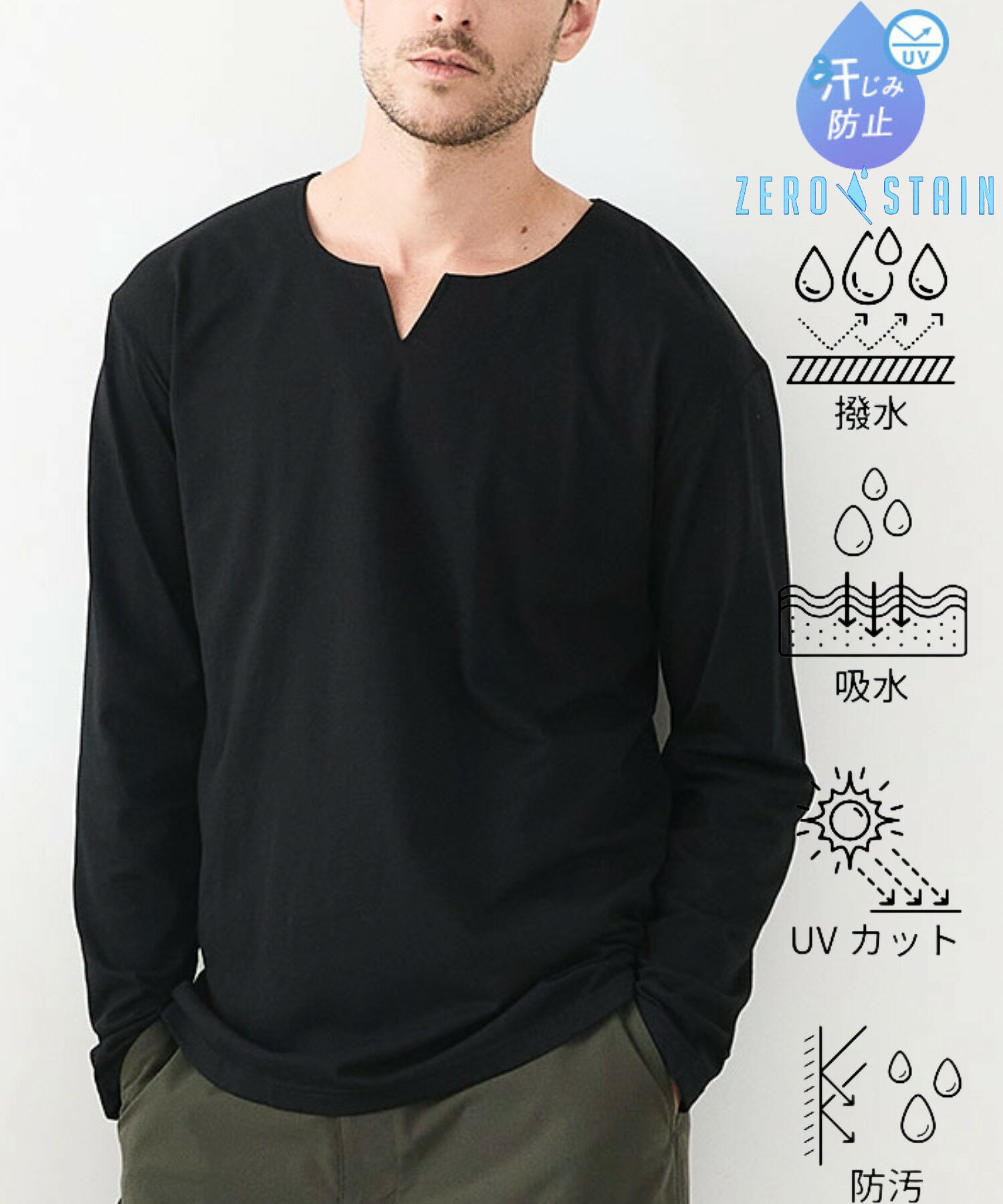 【2025秋冬 新作】キーネックロンT 汗染み 防止 ZERO STAIN ゼロステイン 汗染み 目立ちにくい メンズ ユニセックス Tシャツ