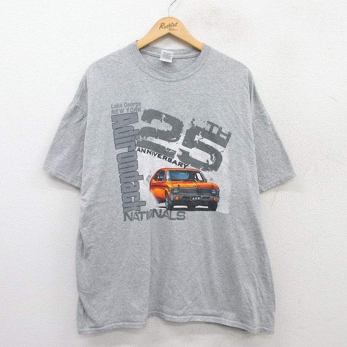 【中古】古着 半袖 ビンテージ ヴィンテージTシャツ メンズ 00年代 00s 車 アディロンダック 大きいサイズ 2L LL ビッグシルエット ゆったり ビッグサイズ オーバーサイズ クルーネック 丸首 グレー 霜降り XLサイズ 中古 | 春夏 夏物 夏服 メンズファッション カ