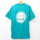 【中古】古着 フルーツオブザルーム 半袖 ビンテージ ヴィンテージTシャツ メンズ 90年代 90s アディロンダック フットボール コットン クルーネック 丸首 USA製 アメリカ製 青緑 XLサイズ 中古 | 春夏 夏物 夏服 ヴィンテージTシャツ メンズファッション カット