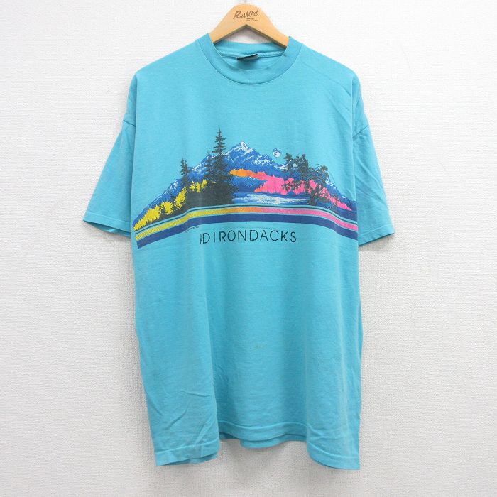 【中古】古着 SIGNAL 半袖 ビンテージ ヴィンテージTシャツ メンズ 90年代 90s アディロンダック 大きいサイズ 2L LL ビッグシルエット ゆったり ビッグサイズ オーバーサイズ コットン クルーネック 丸首 USA製 アメリカ製 水色 【spe】 XLサイズ 中古 | 春夏 夏
