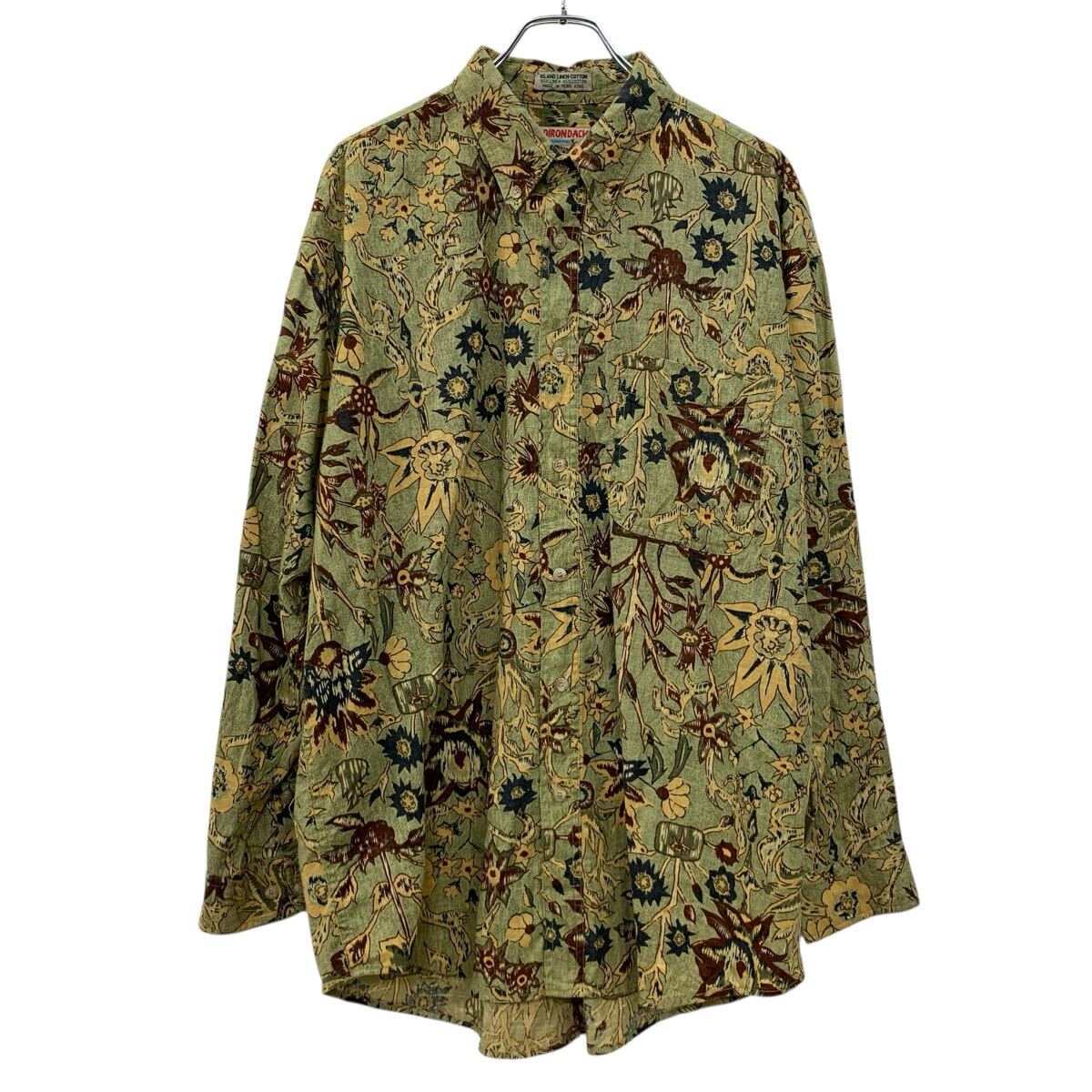 【中古】【古着】 ADIRONDACK 長袖 柄シャツ XL カーキ マルチカラー ボタンダウン ボタン 総柄シャツ 総柄 花 胸ポケット 長袖シャツ 春物 a710-6817