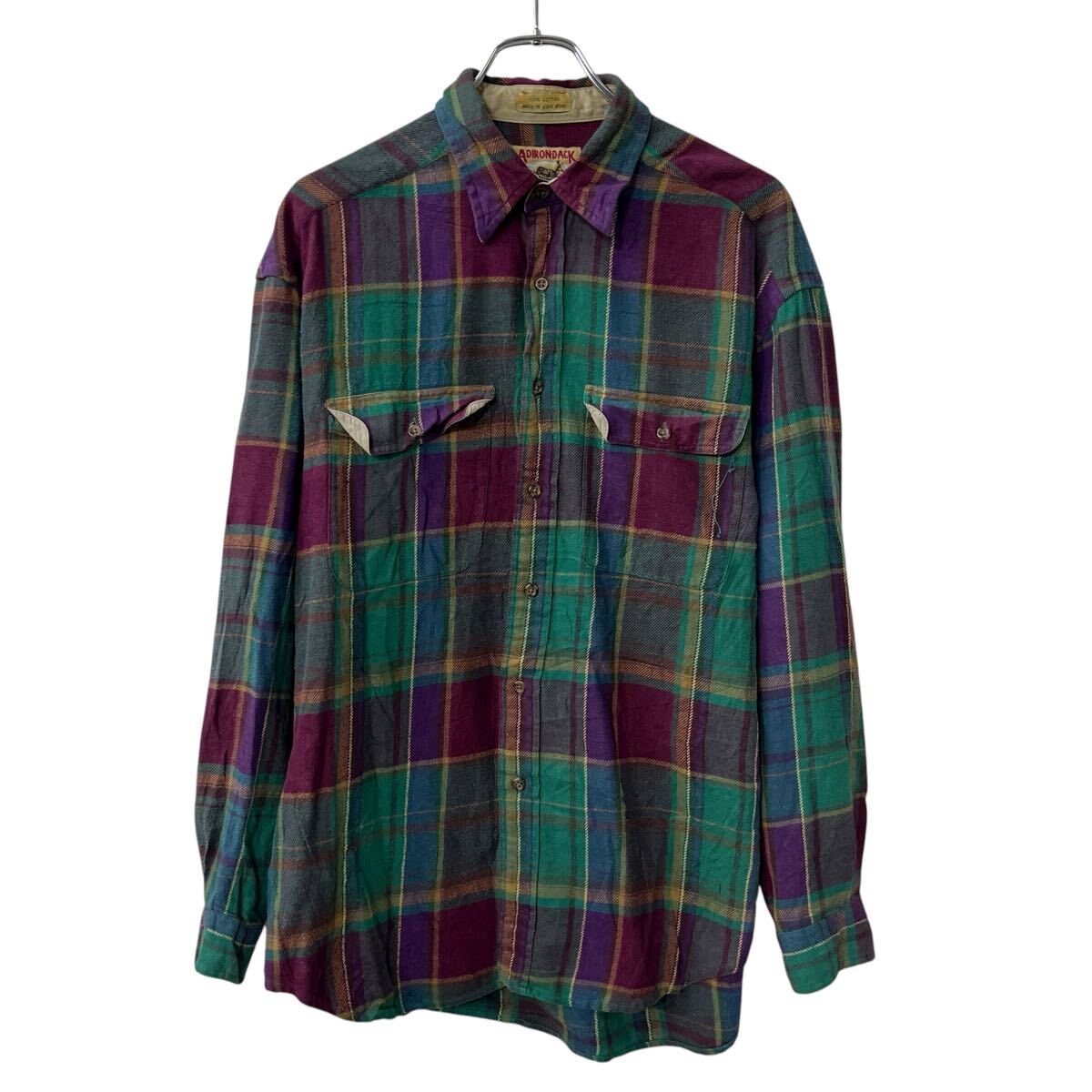【中古】【古着】 ADIRONDACK 長袖 ネルシャツ L グリーン マルチカラー チェック柄 格子柄 胸ポケット 長袖シャツ トップス 秋物 a711-5053