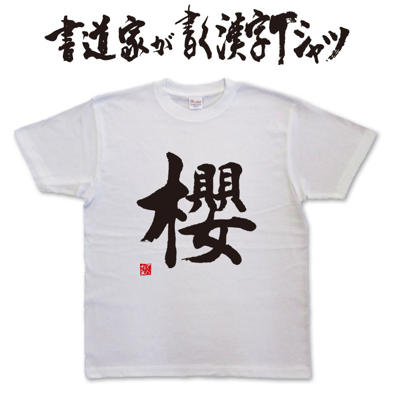 【櫻】書道家が書く漢字Tシャツ おもしろTシャツ 本物の筆文字を使用したオリジナルプリントTシャツ書道家が書いた文字を和柄漢字Tシャツにしました★ 名入れ 誕生日プレゼント 【楽ギフ_名入れ】 pt1 ..