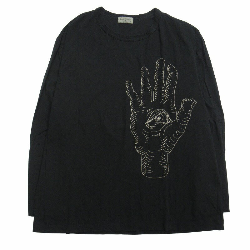 【中古】美品 20ss ヨウジヤマモトプールオム YOHJI YAMAMOTO POUR HOMME テクノラマ天竺 Yuuka Asakura 抜染プリント Tシャツ カットソー ロングスリーブ 長袖 朝倉優佳 ハンド 3 黒 ブラック メンズ 【ベクトル 古着】 250307