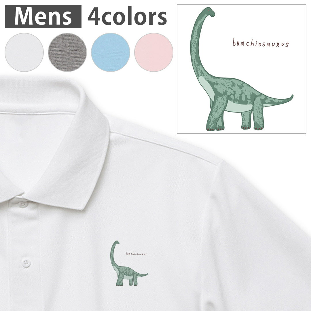 選べる4カラー メンズ ドライポロシャツ 鹿の子 メンズ 半袖 ホワイト グレー ライトブルー ベビーピンク ワンポイントデザイン Polo shirt シワが付きにくい 乾きやすい XS S M L XL 2XL 3XL 4XL 5XL 017562 ダイナソー 恐竜 Dinosaur ブラキオサウルス