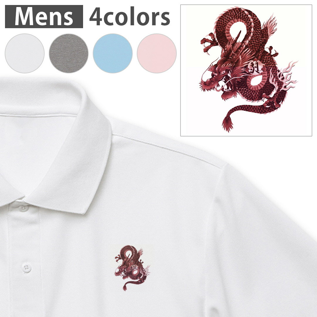 選べる4カラー メンズ ドライポロシャツ 鹿の子 メンズ 半袖 ホワイト グレー ライトブルー ベビーピンク ワンポイントデザイン Polo shirt シワが付きにくい 乾きやすい XS S M L XL 2XL 3XL 4XL 5XL 017898 ワンポイント ドラゴン 竜 龍 中国 赤
