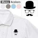 選べる4カラー メンズ ドライポロシャツ 鹿の子 メンズ 半袖 ホワイト グレー ライトブルー ベビーピンク ワンポイントデザイン Polo shirt シワが付きにくい 乾きやすい XS S M L XL 2XL 3XL 4XL 5XL 017945 ワンポイント ヒゲ 髭 シルクハット メガネ 紳士
