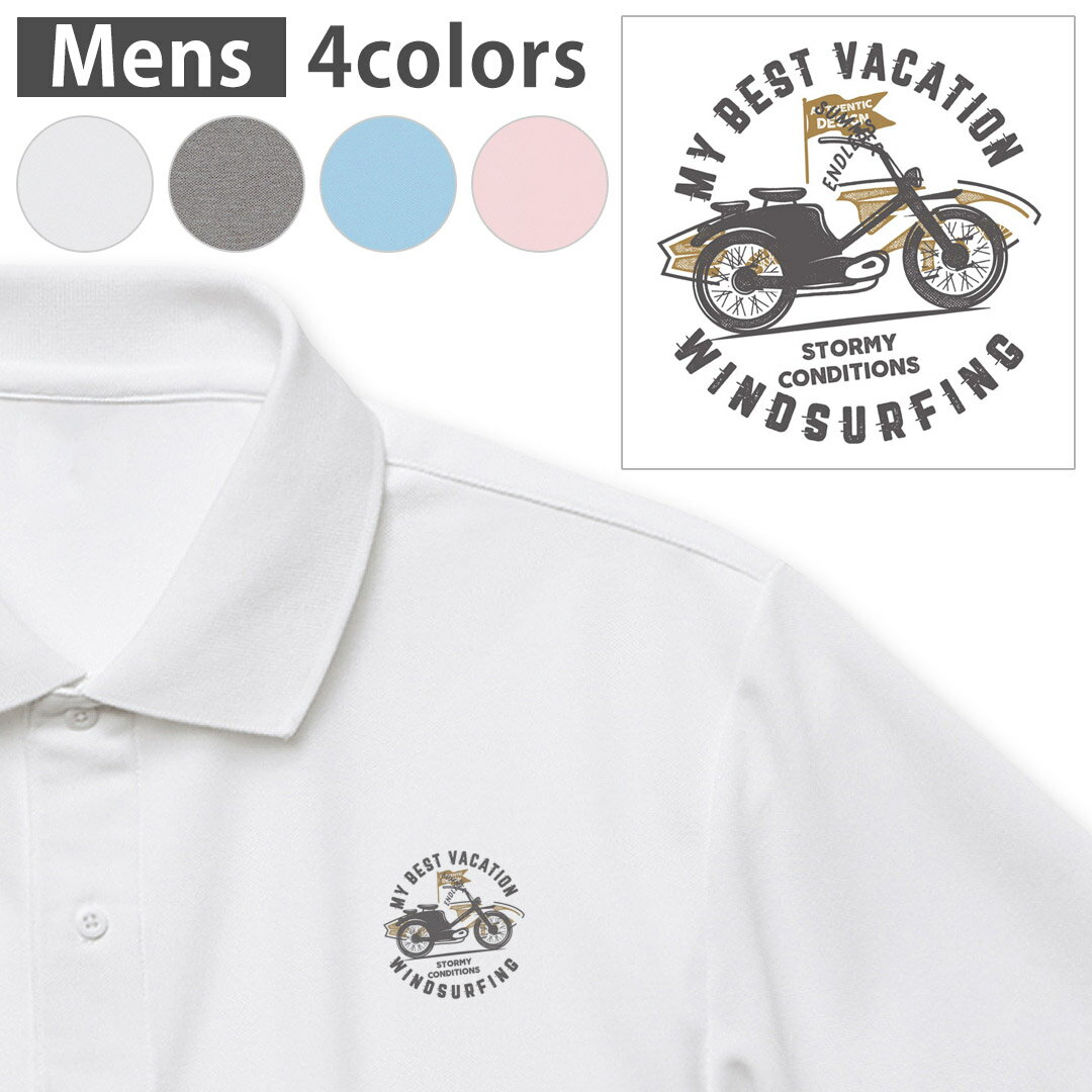 選べる4カラー メンズ ドライポロシャツ 鹿の子 メンズ 半袖 ホワイト グレー ライトブルー ベビーピンク ワンポイントデザイン Polo shirt シワが付きにくい 乾きやすい XS S M L XL 2XL 3XL 4XL 5XL 017529 乗り物 バイク ヴィンテージ レトロ
