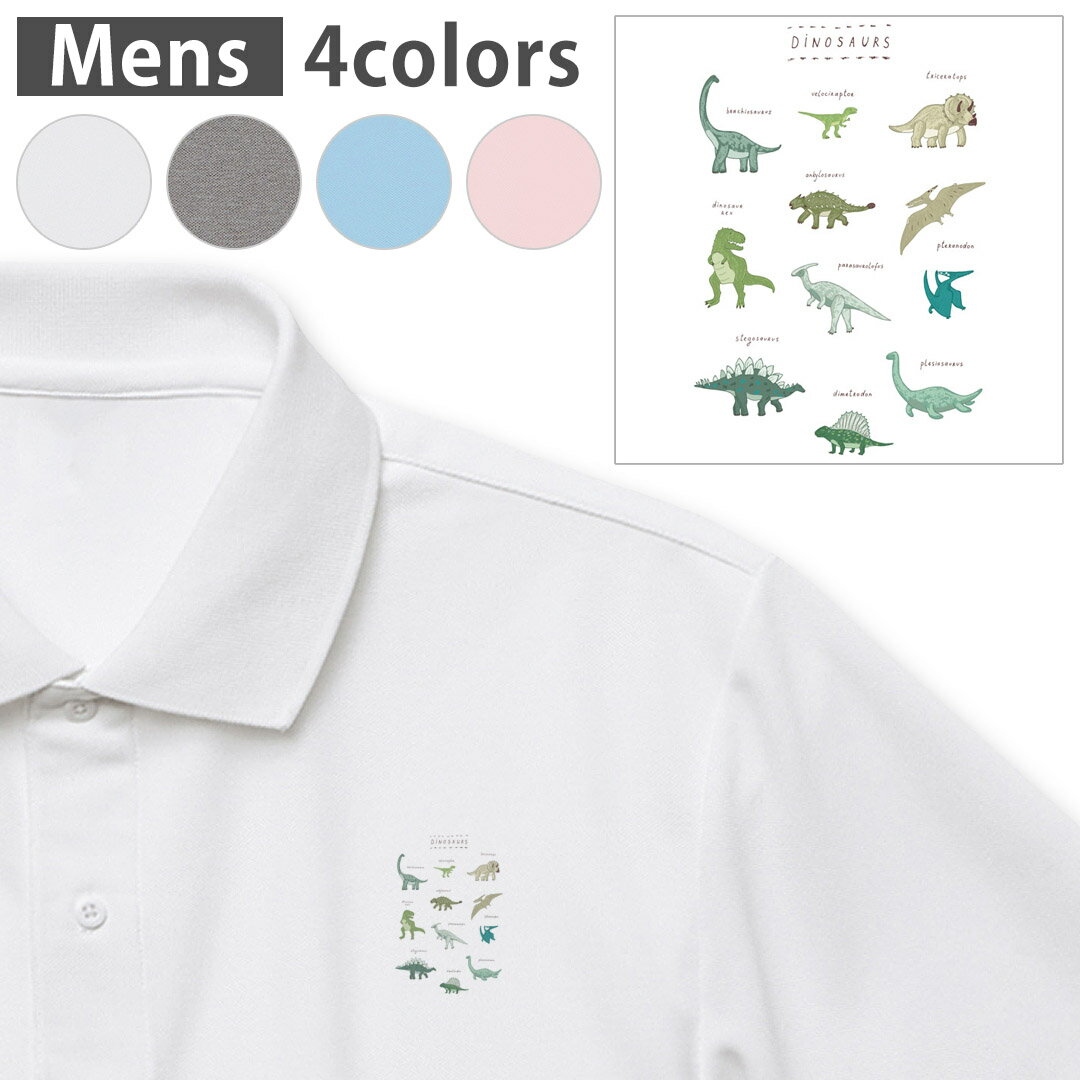 選べる4カラー メンズ ドライポロシャツ 鹿の子 メンズ 半袖 ホワイト グレー ライトブルー ベビーピンク ワンポイントデザイン Polo shirt シワが付きにくい 乾きやすい XS S M L XL 2XL 3XL 4XL 5XL 017552 ダイナソー ダイナソー 恐竜 Dinosaur 表