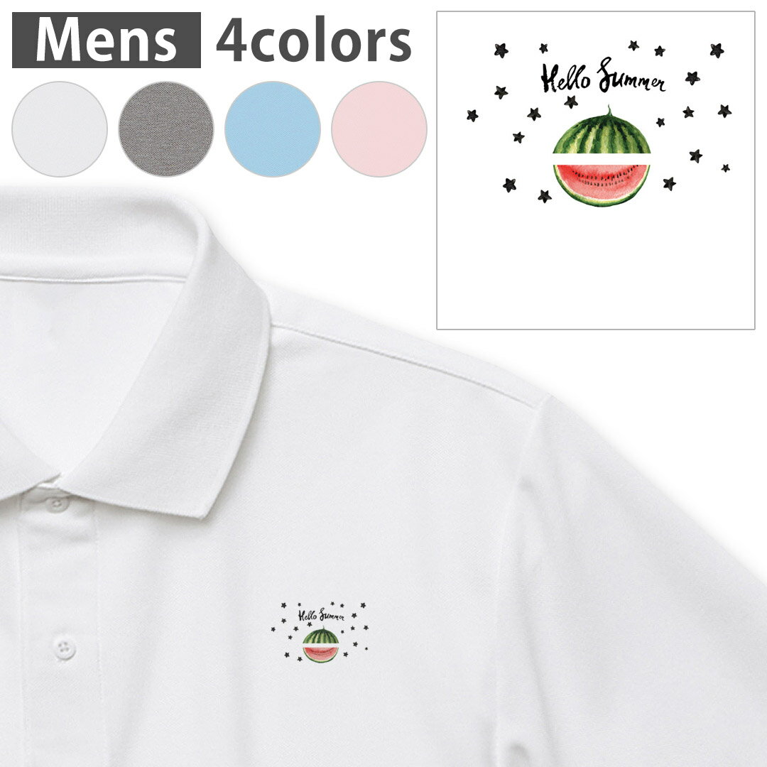 選べる4カラー メンズ ドライポロシャツ 鹿の子 メンズ 半袖 ホワイト グレー ライトブルー ベビーピンク ワンポイントデザイン Polo shirt シワが付きにくい 乾きやすい XS S M L XL 2XL 3XL 4XL 5XL 017842 夏 スイカ 夏 summer