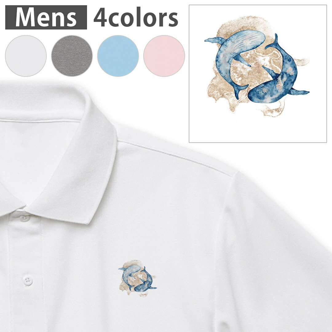 選べる4カラー メンズ ドライポロシャツ 鹿の子 メンズ 半袖 ホワイト グレー ライトブルー ベビーピンク ワンポイントデザイン Polo shirt シワが付きにくい 乾きやすい XS S M L XL 2XL 3XL 4XL 5XL 017854 海の中 Underwater くじら 海の中
