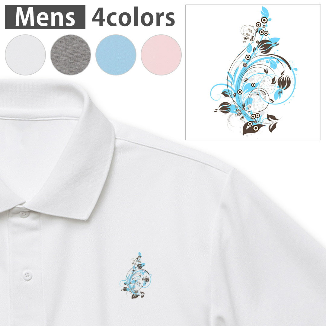 選べる4カラー メンズ ドライポロシャツ 鹿の子 メンズ 半袖 ホワイト グレー ライトブルー ベビーピンク ワンポイントデザイン Polo shirt シワが付きにくい 乾きやすい XS S M L XL 2XL 3XL 4XL 5XL 017931 ワンポイント つた ツタ 飾り バラ 薔薇 花