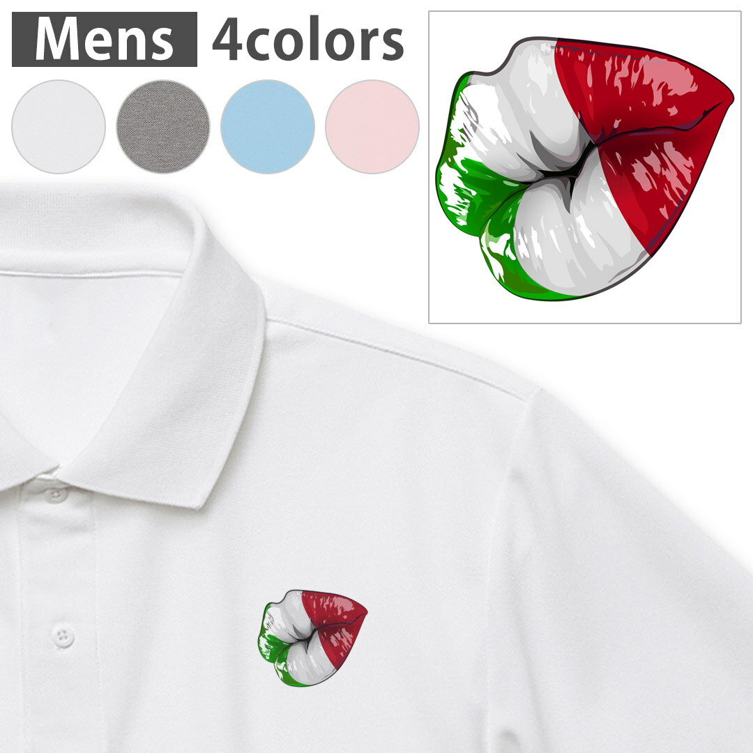 選べる4カラー メンズ ドライポロシャツ 鹿の子 メンズ 半袖 ホワイト グレー ライトブルー ベビーピンク ワンポイントデザイン Polo shirt シワが付きにくい 乾きやすい XS S M L XL 2XL 3XL 4XL 5XL 017905 ワンポイント 唇 口紅 イタリア 国旗