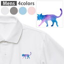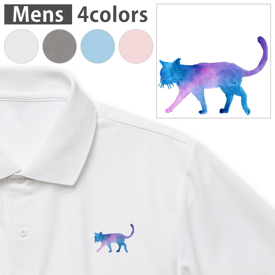 選べる4カラー メンズ ドライポロシャツ 鹿の子 メンズ 半袖 ホワイト グレー ライトブルー ベビーピンク ワンポイントデザイン Polo shirt シワが付きにくい 乾きやすい XS S M L XL 2XL 3XL 4XL 5XL 018082 ワンポイント 猫 ねこ シルエット マーブル