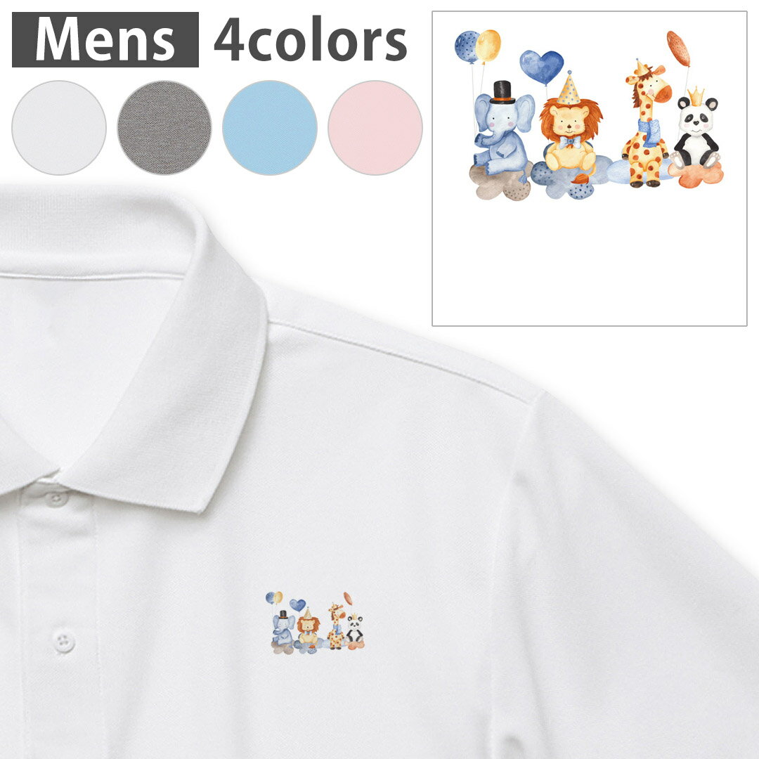 選べる4カラー メンズ ドライポロシャツ 鹿の子 メンズ 半袖 ホワイト グレー ライトブルー ベビーピンク ワンポイントデザイン Polo shirt シワが付きにくい 乾きやすい XS S M L XL 2XL 3XL 4XL 5XL 017518 アニマル アニマル 雲 風船