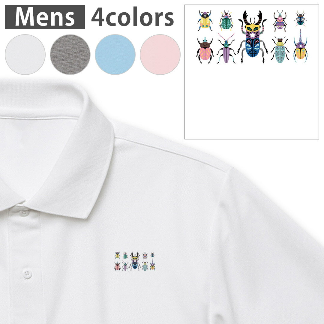 選べる4カラー メンズ ドライポロシャツ 鹿の子 メンズ 半袖 ホワイト グレー ライトブルー ベビーピンク ワンポイントデザイン Polo shirt シワが付きにくい 乾きやすい XS S M L XL 2XL 3XL 4XL 5XL 017768 昆虫 虫 昆虫 虫 カラフル 一覧