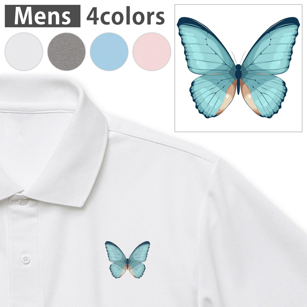 選べる4カラー メンズ ドライポロシャツ 鹿の子 メンズ 半袖 ホワイト グレー ライトブルー ベビーピンク ワンポイントデザイン Polo shirt シワが付きにくい 乾きやすい XS S M L XL 2XL 3XL 4XL 5XL 017858 ワンポイント 蝶 チョウ ちょうちょ バタフライ