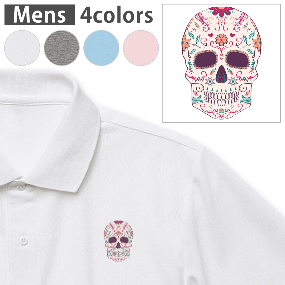 選べる4カラー メンズ ドライポロシャツ 鹿の子 メンズ 半袖 ホワイト グレー ライトブルー ベビーピンク ワンポイントデザイン Polo shirt シワが付きにくい 乾きやすい XS S M L XL 2XL 3XL 4XL 5XL 017899 ワンポイント ドクロ どくろ 骸骨 スカル レゲエ アート